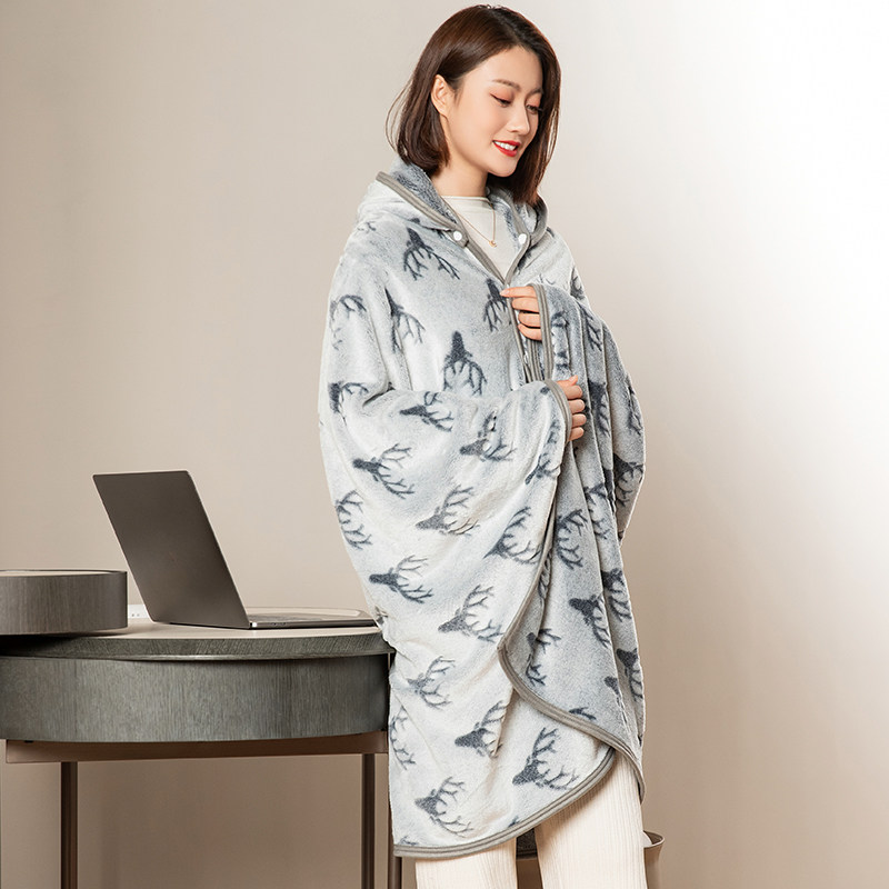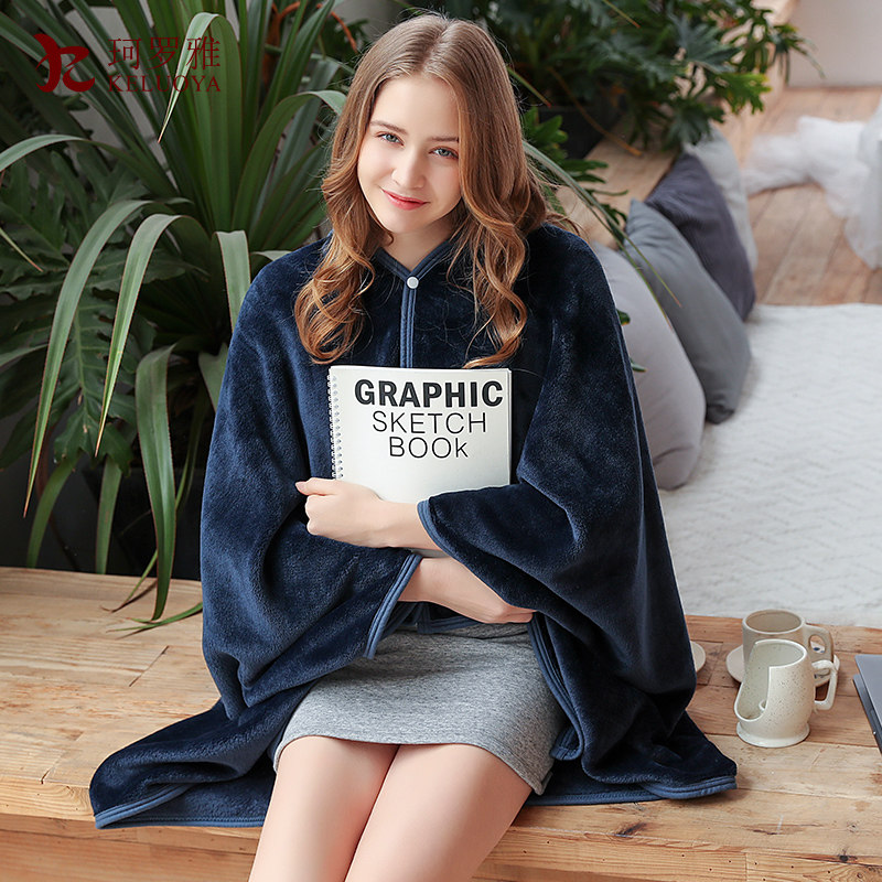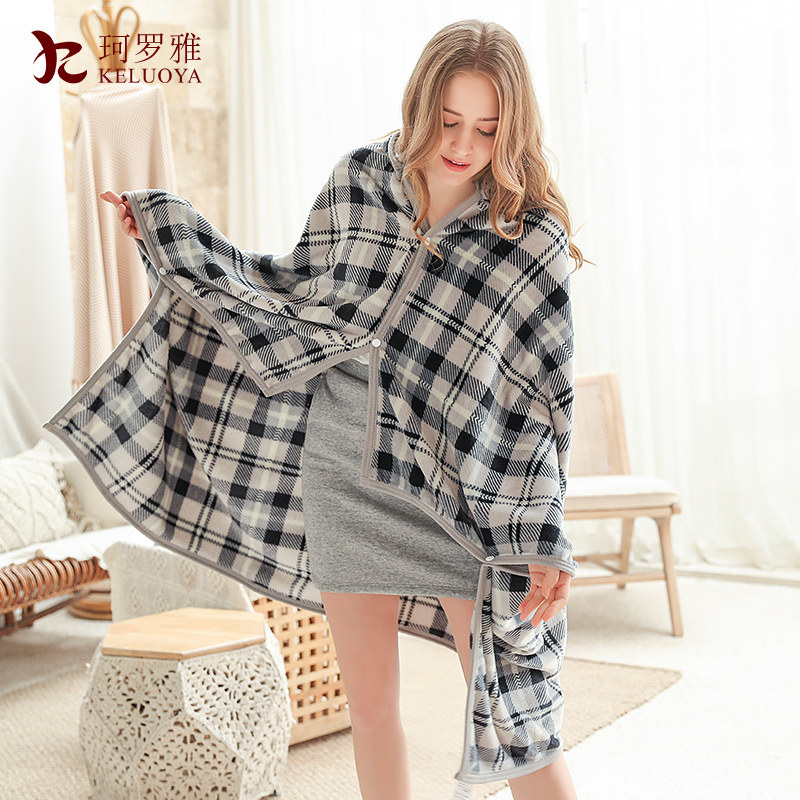 淘宝春秋单人保暖珊瑚绒懒人披肩毛毯办公室学生午睡空调毯子披风斗篷