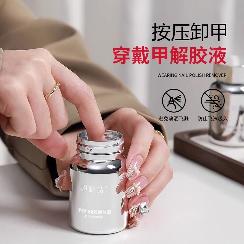 淘宝穿戴甲专用浸润液固态贴片胶海绵浸泡解胶剂不伤甲美甲快速卸甲水