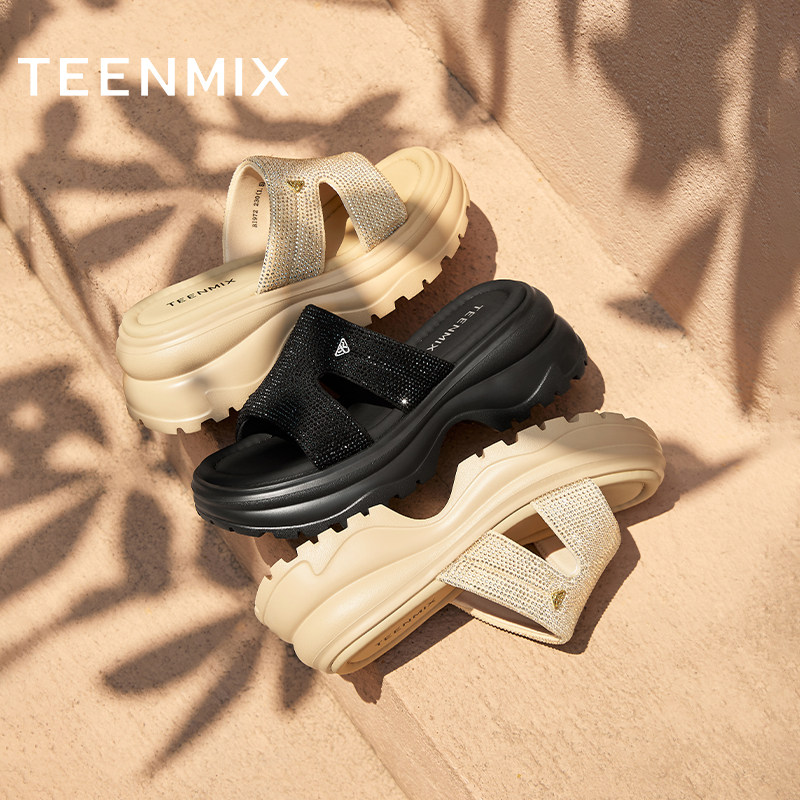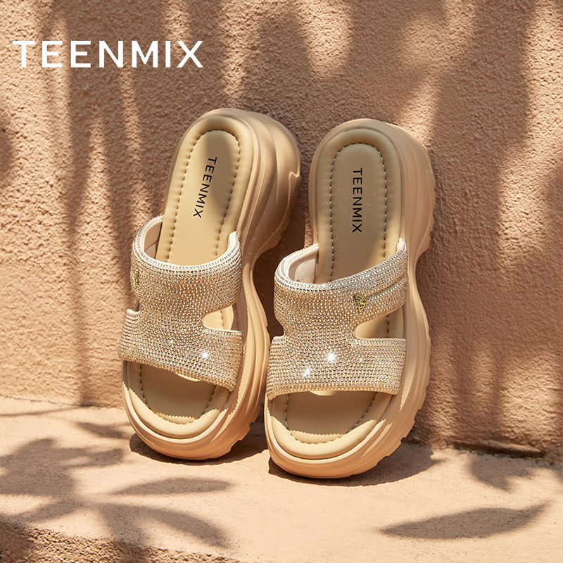 天猫天美意一字拖闪钻增高厚底拖鞋女外穿休闲凉拖夏季新款BI972BT5