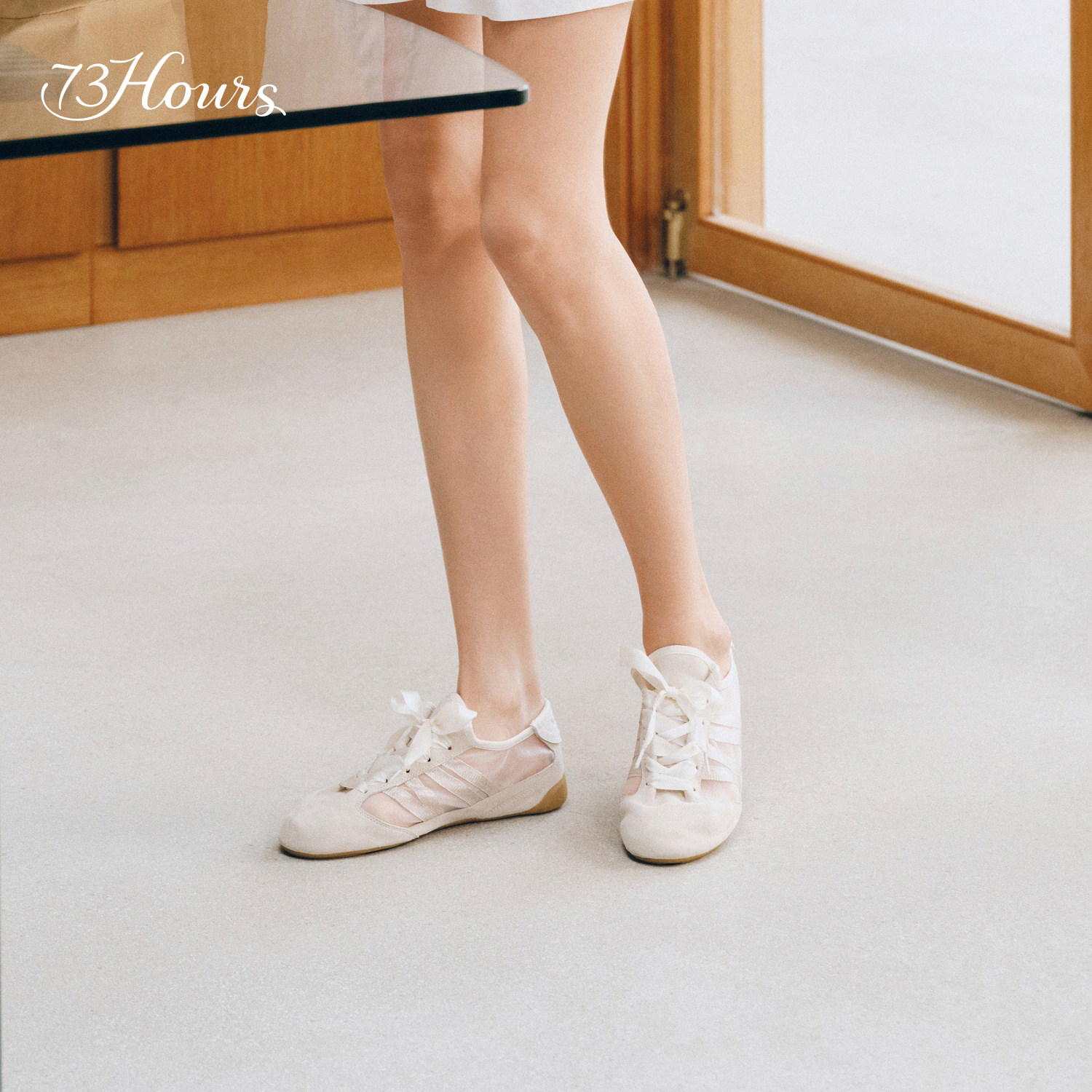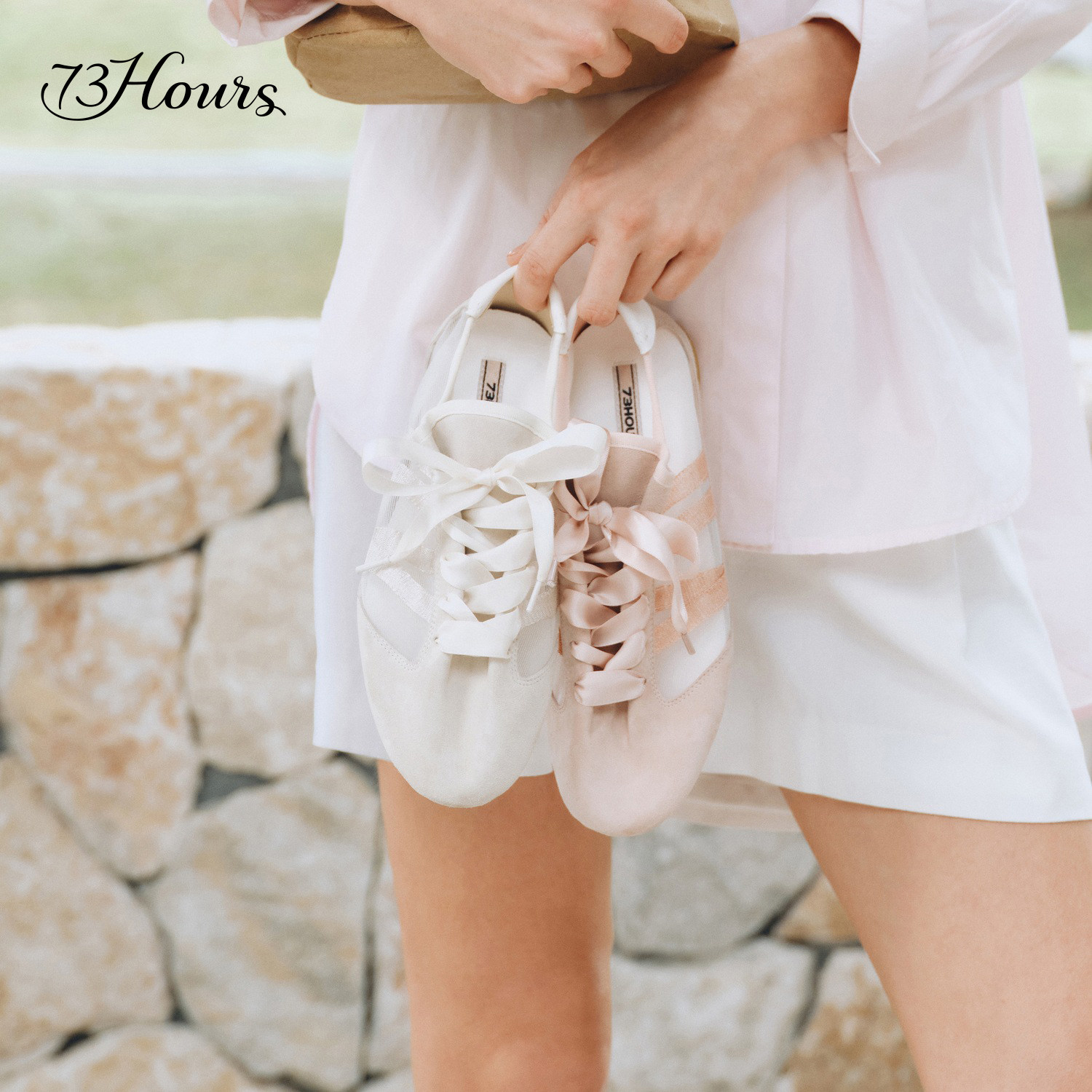 73hours女鞋2026春季新款「云上芭蕾」系列,以轻盈网纱与经典德训鞋型融合,打造兼具优雅与舒适的休闲鞋款。鞋面采用透气网纱材质,搭配柔韧芭蕾线条设计,视觉上更显脚型纤细修长。内里柔软亲肤,中底搭载缓震科技,久穿不累,真正实现“如履云端”的舒适体验。简约百搭的配色,轻松驾驭通勤、约会或日常出行等多种场景。延续73hours一贯的匠心工艺,兼顾时尚与实穿,让每一步都自在轻盈。2026春季,穿上「云上芭蕾」,邂逅春日里的灵动与浪漫。