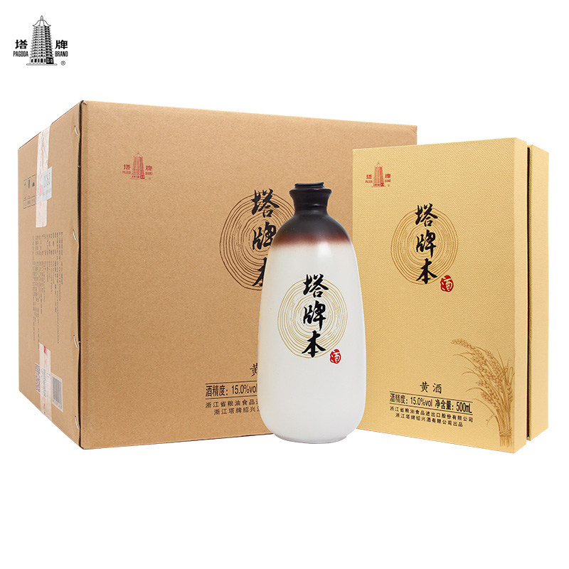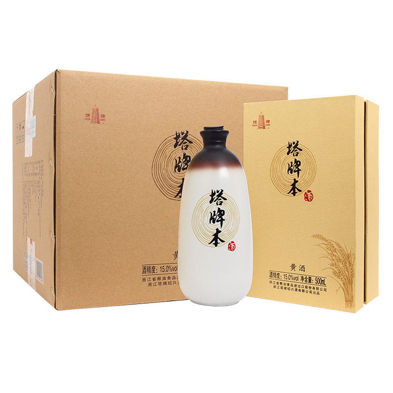 天猫塔牌本酒500ml*6瓶整箱手工黄酒半干型糯米花雕原色无焦糖色送礼