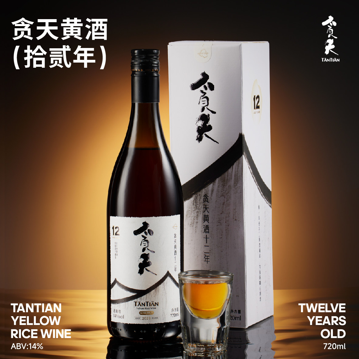 天猫贪天TANTIAN黄酒12年陈 手工酿造半干型绍兴黄酒720ml*1瓶礼盒装