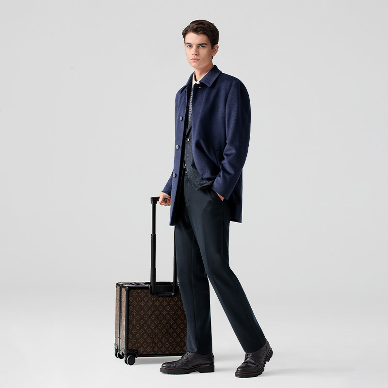 VICUTU威可多行政风大衣,专为都市精英打造,融合经典商务格调与现代时尚设计。采用高品质羊毛混纺面料,触感细腻,保暖性与垂坠感俱佳,兼顾舒适与挺括。简约利落的剪裁,配以精致纽扣与翻领设计,凸显沉稳干练气质。多口袋实用布局,满足日常收纳需求。无论是通勤办公还是商务洽谈,都能轻松驾驭,展现从容自信的职场风范。VICUTU以匠心工艺诠释品质生活,这款大衣不仅是冬日保暖之选,更是提升整体造型的点睛单品,诠释现代男士的优雅与品位。