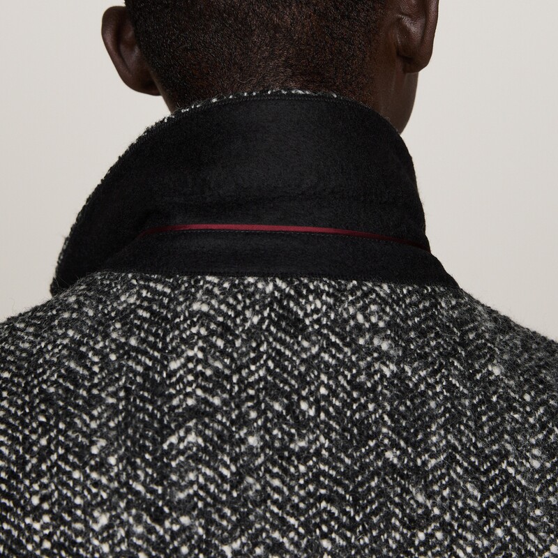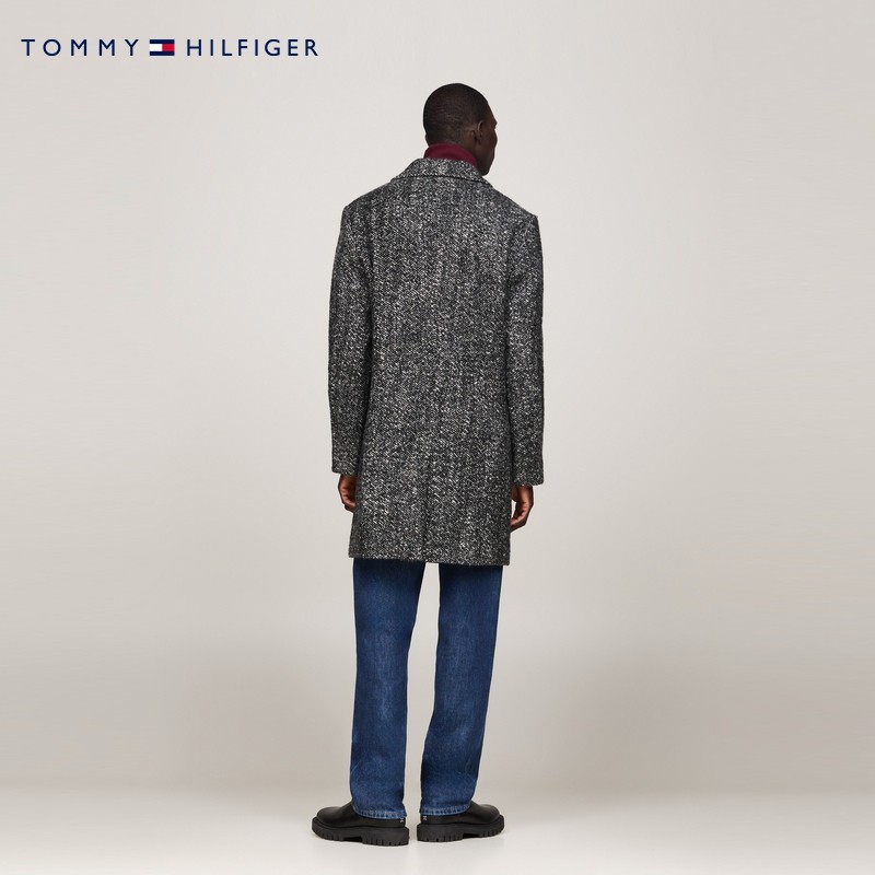 天猫Tommy秋冬男装羊毛混纺人字纹商务休闲中长款翻领毛呢大衣外套