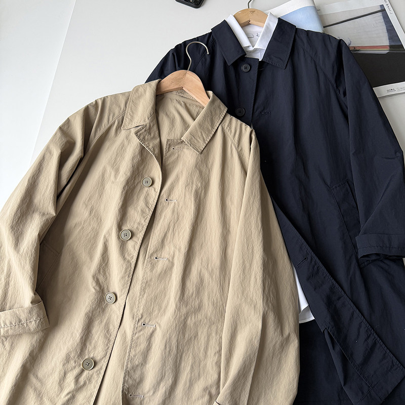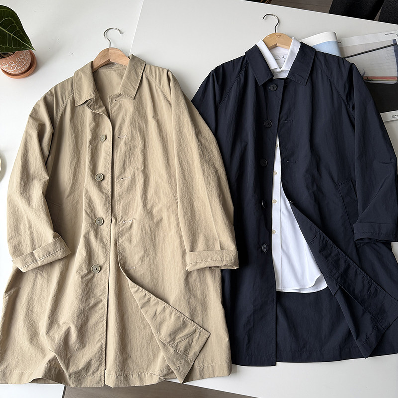 天w2x春秋季高密加捻细斜纹风衣男中长款外套高级感宽松猎装大衣潮