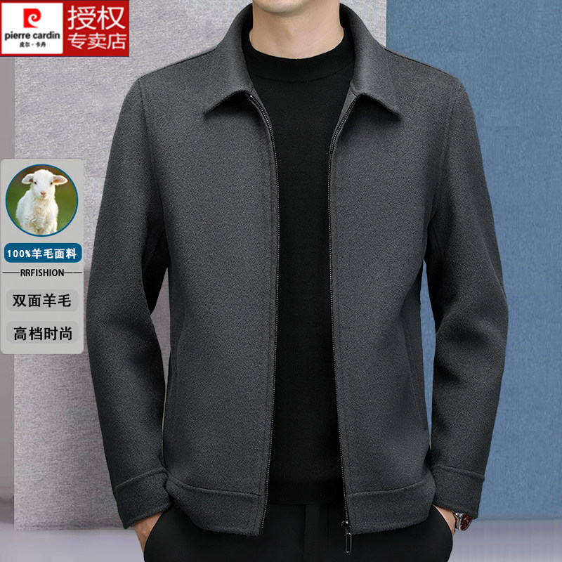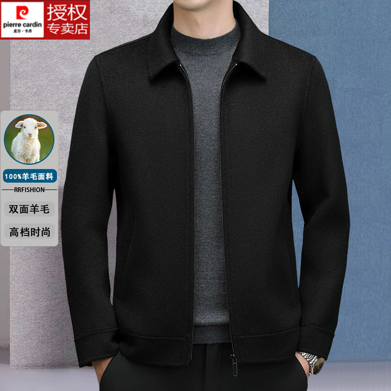 淘宝皮尔卡丹冬季双面羊毛呢子大衣男士短款商务休闲夹克拉链翻领外套