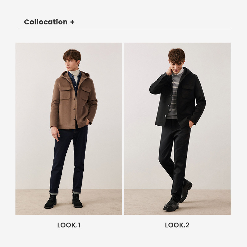 【100%羊毛】报喜鸟秋冬新款男士商务休闲毛呢大衣双面呢宽松外套