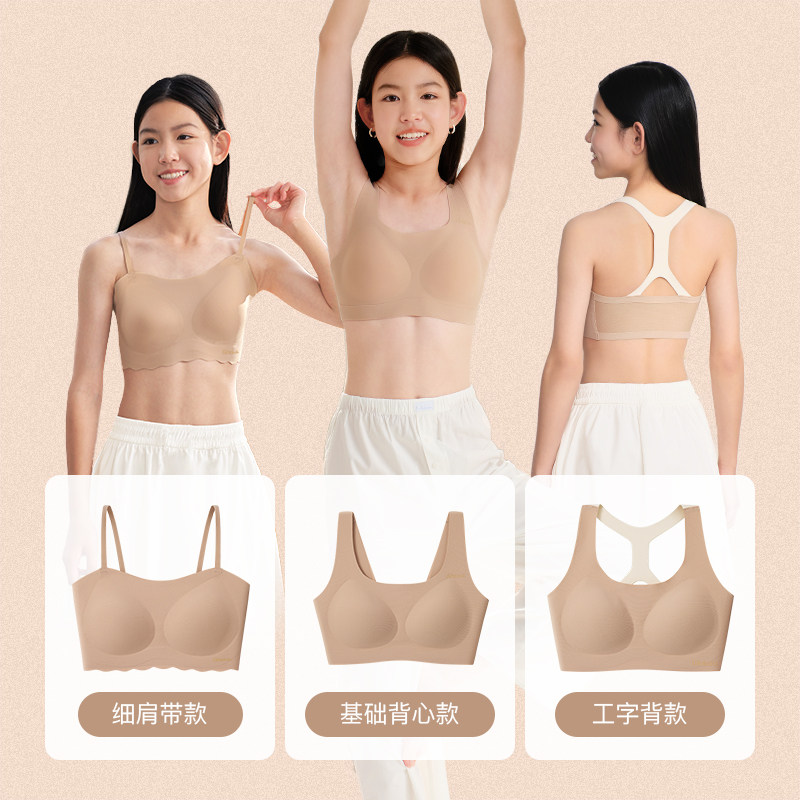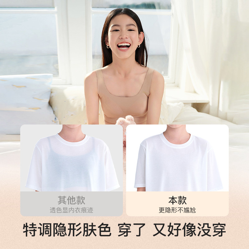 天likeuu女童内衣细肩带粉底液隐形背心青春发育期初中学生少女文胸