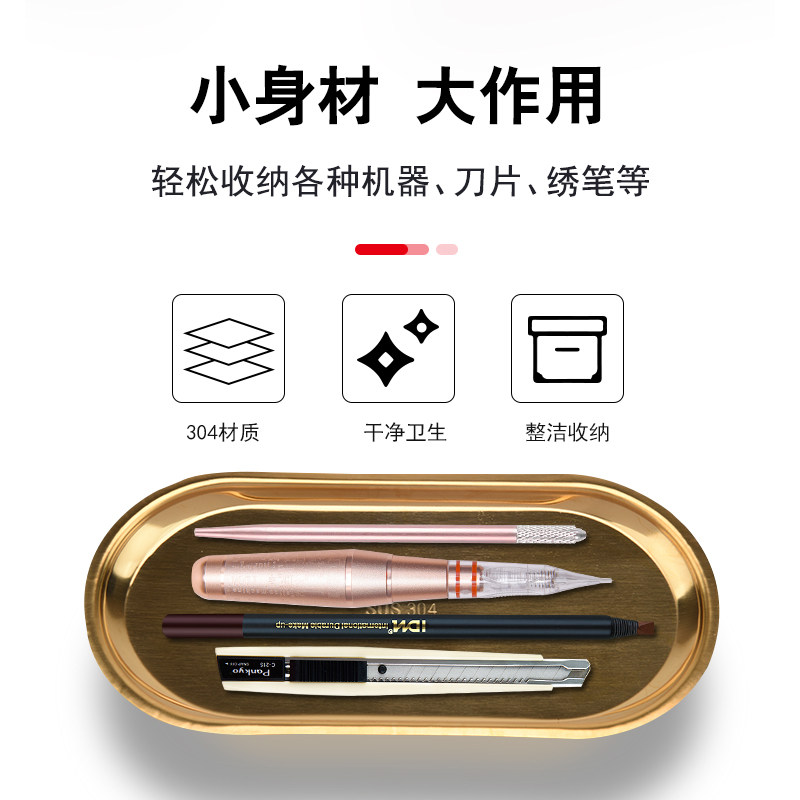 本款半永久纹绣美容院专用消毒盘腰盘,采用优质加厚304不锈钢材质打造,具备卓越的耐腐蚀、耐高温及抗氧化性能,安全无毒,符合医疗级卫生标准。加厚设计增强承重能力,边缘光滑圆润,防止划伤,使用更安心。盘面宽敞,分层合理,可高效收纳纹绣针具、色料瓶、棉片、镊子等常用工具,便于操作取用。同时支持高温高压、紫外线及化学消毒,确保器械无菌,保障客户安全。简约实用,易于清洁,是专业纹绣师提升工作效率与卫生标准的理想之选,广泛应用于美容、纹绣、美甲等精细操作场景。