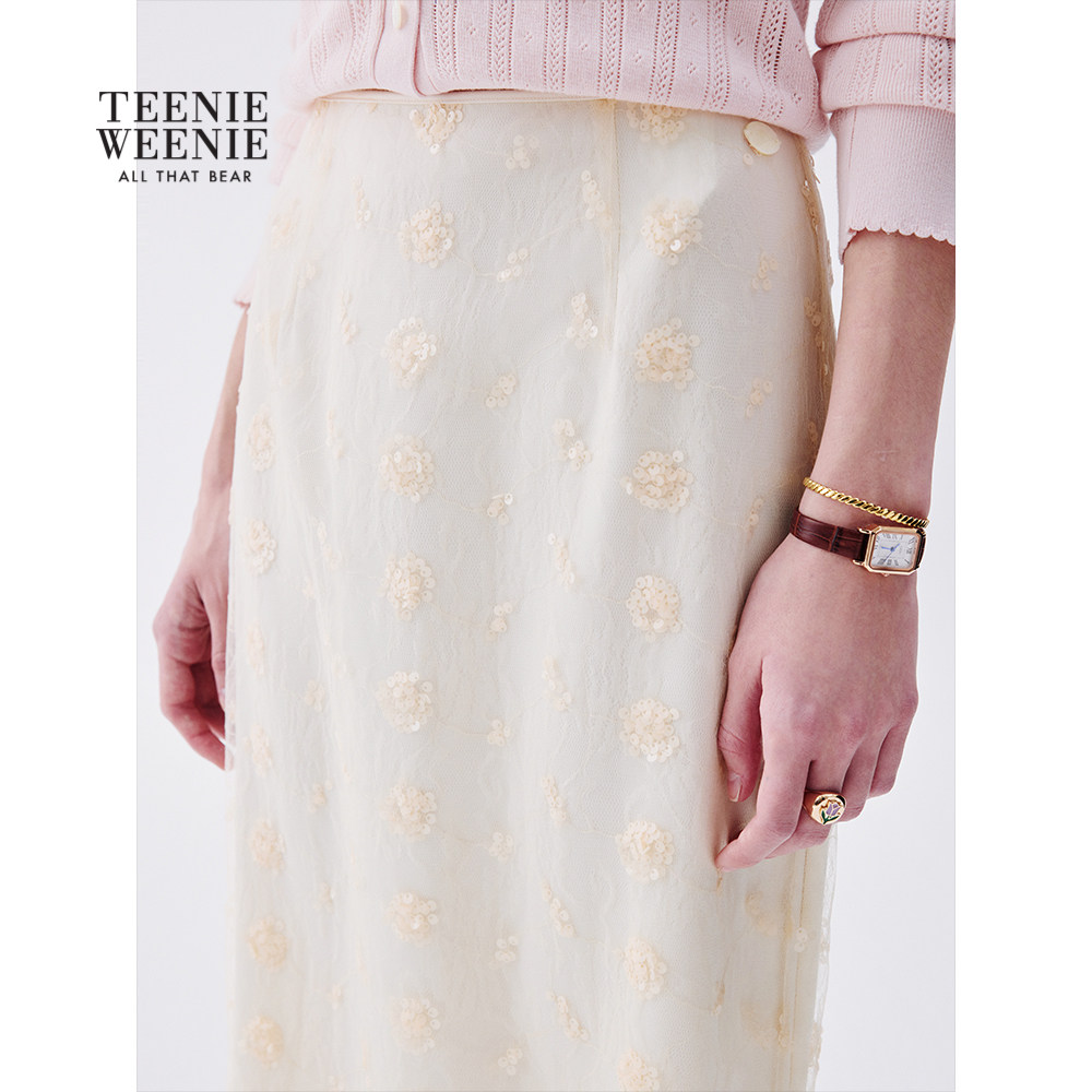 天猫TeenieWeenie小熊女装半身裙26春季新品简约休闲直筒蕾丝裙长裙