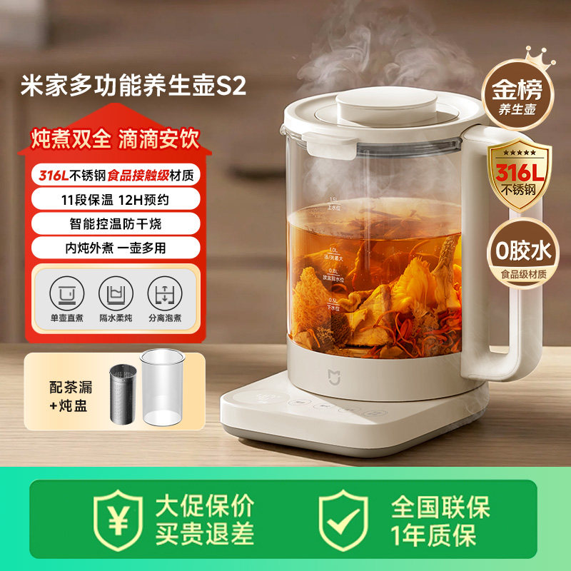 小米米家养生壶N1是一款集烧水、煮茶、保温于一体的智能玻璃养生壶,采用高硼硅玻璃材质,耐高温、无异味,健康安全。支持多段恒温功能,可精准控温(如45℃、85℃、100℃),满足不同茶饮、养生食材的冲泡需求。12小时智能保温,随时享用温热好茶。简约设计,小巧不占地,适合办公室、居家使用。三八妇女节将至,作为贴心好礼,既实用又显心意,特别适合注重健康与生活品质的女性。操作简便,一键启动,是日常养生、办公休闲的理想选择,送礼自用两相宜。
