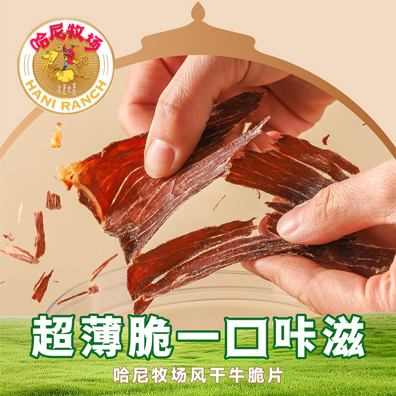 哈尼牧场牛脆脆内蒙古风干牛肉干即食牛肉脆片零食寻香牧场100g
