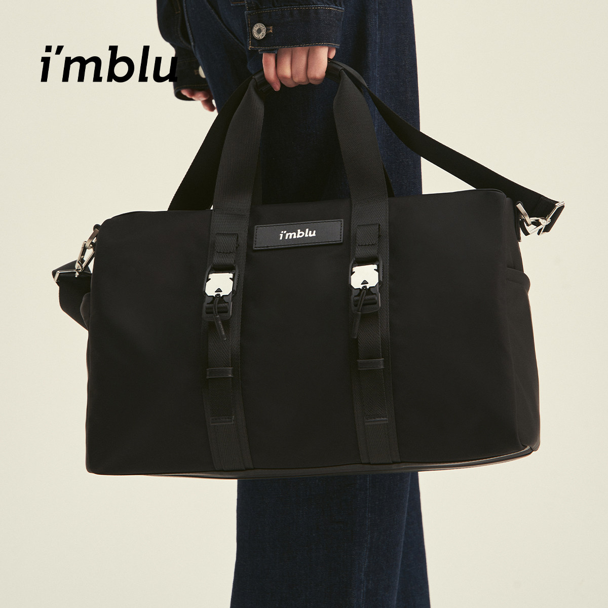 IMBLU波士顿包是一款集出差与健身功能于一体的实用旅行手提包,采用高品质防水耐磨尼龙材质,经久耐用,轻松应对日常通勤、短途出行及健身需求。包身设计简约大气,多隔层结构科学分区,主袋可容纳衣物、鞋履,独立鞋仓保持整洁,侧边网袋方便存放水杯或湿物。加厚提手与可调节肩带设计,背负舒适省力。无论是前往健身房、商务差旅,还是周末短途旅行,IMBLU波士顿包都能满足您对收纳与便捷的双重需求,是都市精英的理想出行伴侣。