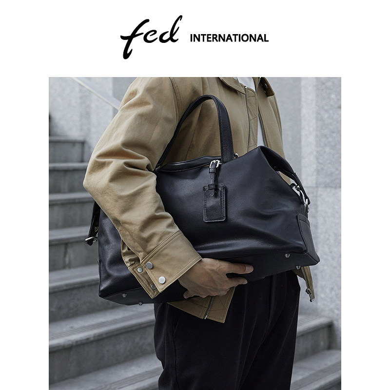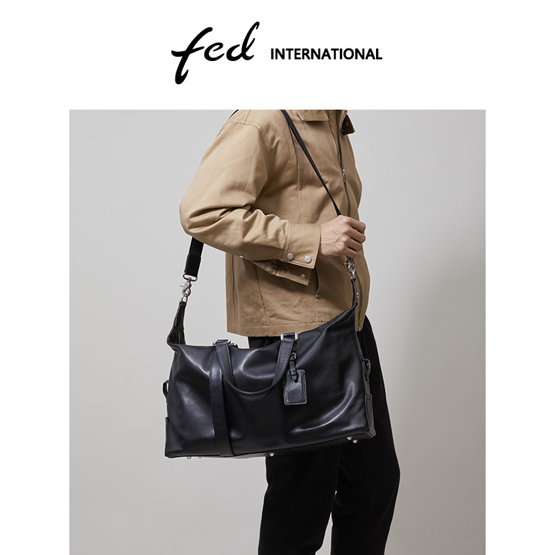 天猫fed大容量头层牛皮男女同款旅行出游休闲手提包斜垮包真皮BFA2022