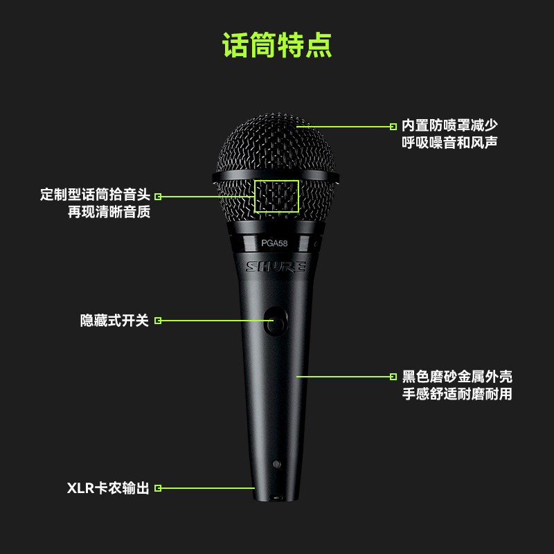 天猫Shure舒尔PGA48/PGA58系列麦克风 直播演讲家用舞台演出专业话筒