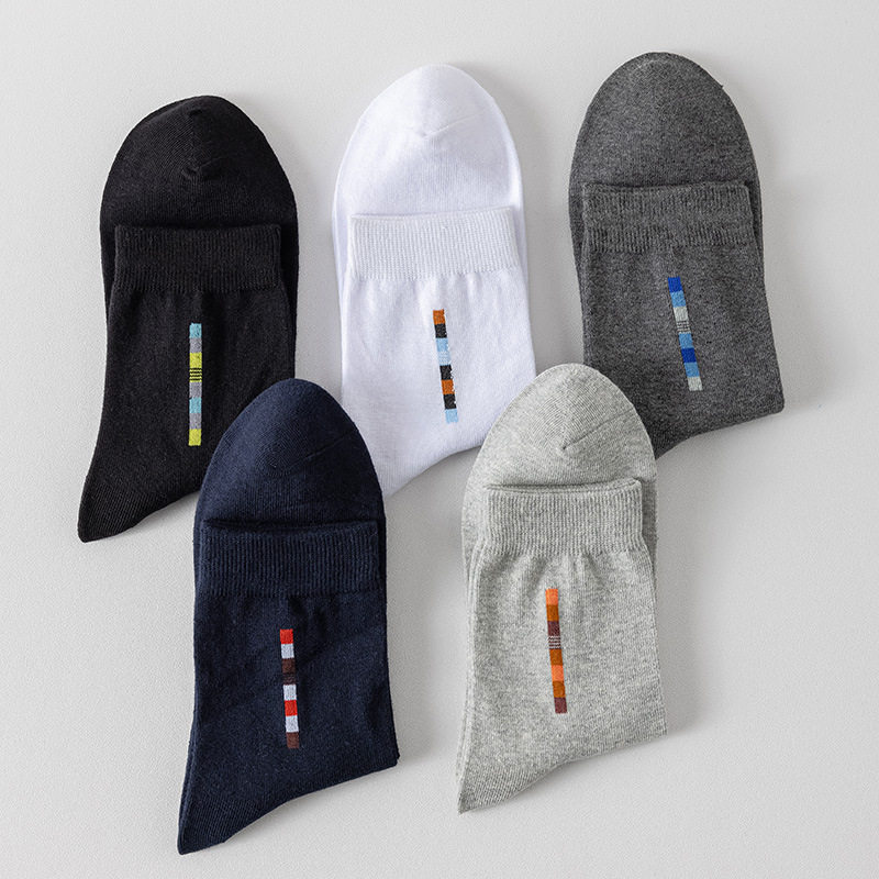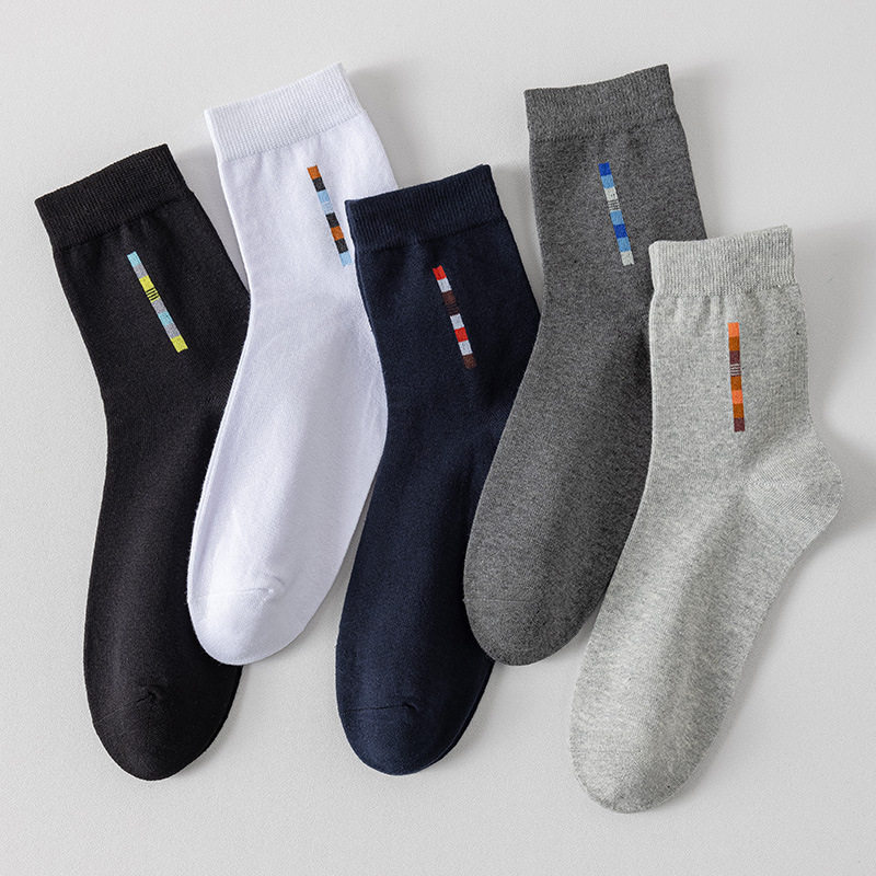 5双 100%纯棉男袜精梳棉防汗防臭中筒袜复古商务风男士秋冬四季款