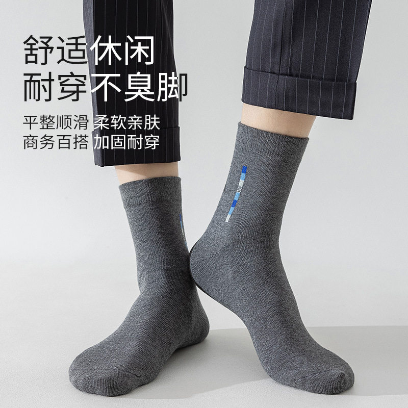 天纯棉防臭男士袜春秋中筒抗菌吸汗商务男袜新疆棉10双装纯色百搭袜