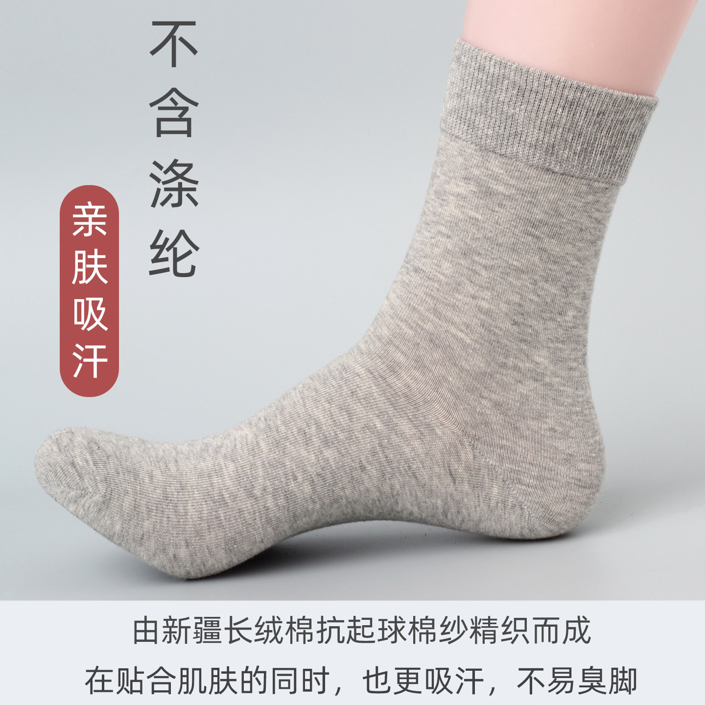 纯棉防臭男士袜春秋中筒抗菌吸汗商务男袜新疆棉10双装纯色百搭袜