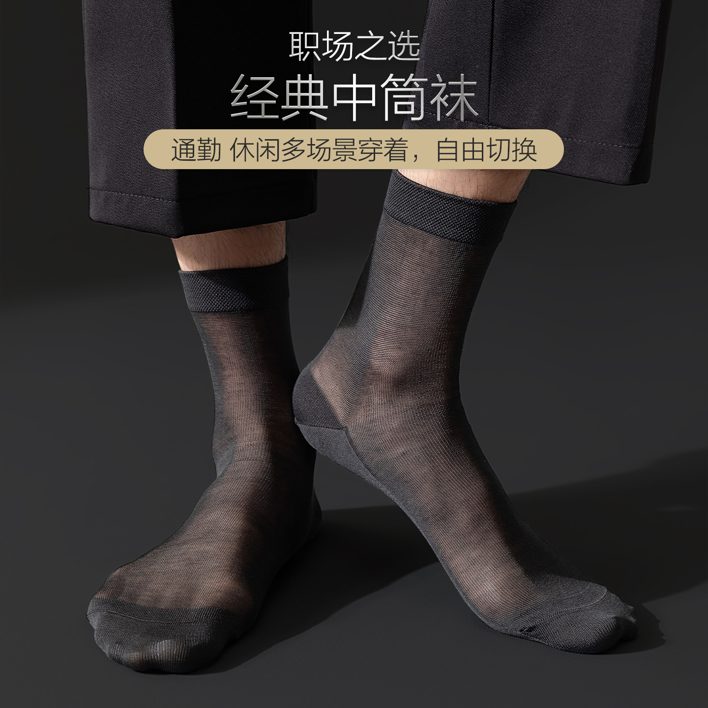袜子男棉丝袜夏季薄款透气玻璃丝防滑吸汗棉底丝袜中筒袜商务男袜