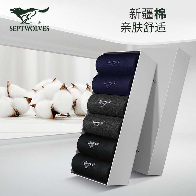 七匹狼纯棉袜子男士中筒袜春秋全棉透气吸汗休闲商务男袜礼盒装