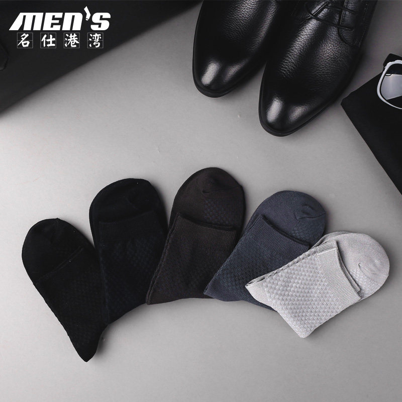 淘恒源祥男士丝袜夏季薄款防臭黑白色中筒袜超薄透气商务冰丝男袜子
