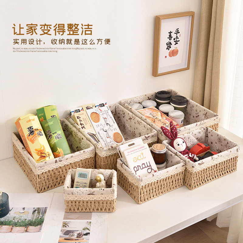 天猫桌面收纳盒玄关钥匙遥控器杂物筐抽屉书本零食篮口红化妆品储物盒