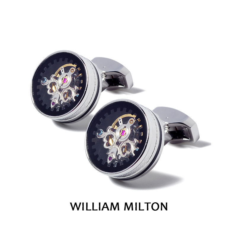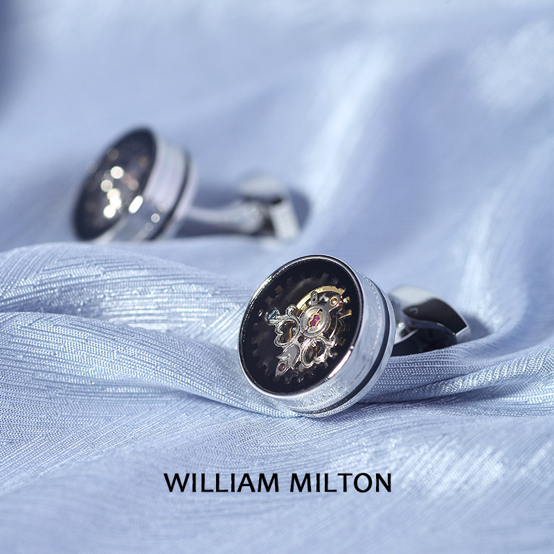 天猫WILLIAM MILTON银色可转动陀飞轮袖扣男士高档轻奢袖口钉定制礼物