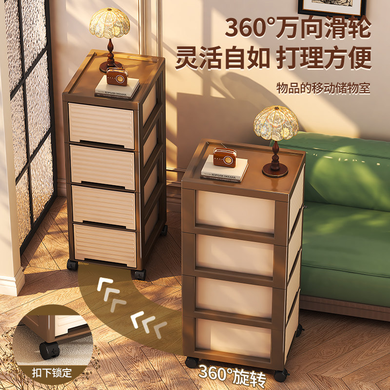 天猫中古风收纳柜落地办公室桌下抽屉柜家用夹缝多层可移动零食储物柜