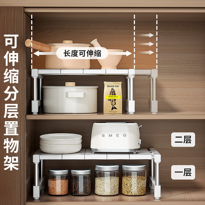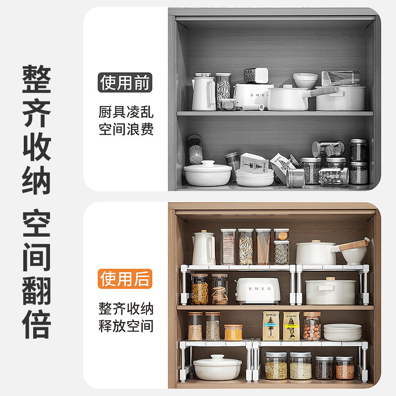 天猫橱柜内分层置物架可伸缩家用厨房柜子隔板台面水槽下锅具收纳架