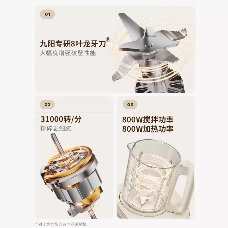 九阳破壁机家用可磨粉打干磨加热干湿两用多功能大容量豆浆料理机