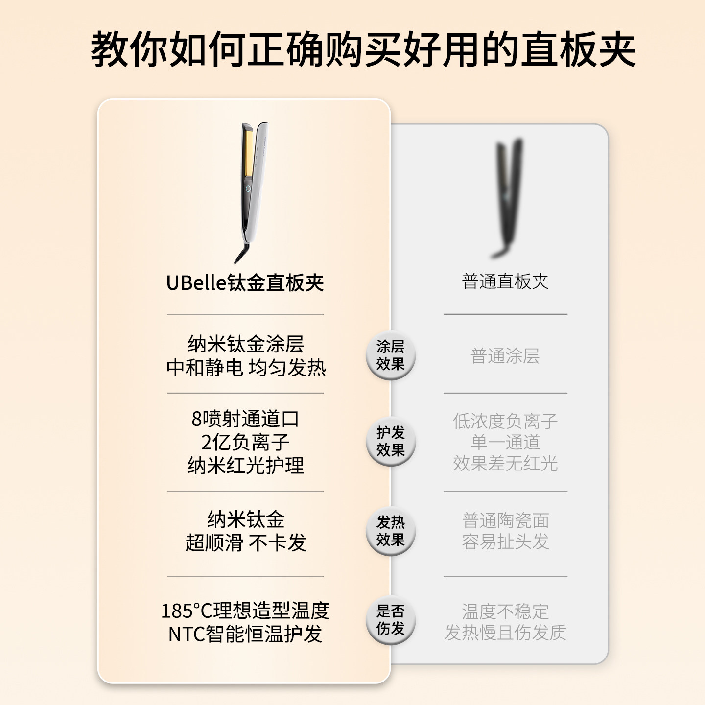 UBelle钛金夹板直发卷发棒是一款集直发、卷发、拉直、造型于一体的多功能美发神器。采用优质钛金涂层面板,导热均匀迅速,有效减少对发质的损伤,同时释放大量负离子,中和静电,抚平毛躁,令秀发顺滑亮泽。智能恒温控制系统可精准调节温度,适配不同发质需求,避免过热损伤。宽幅设计适合各种发量,轻松打造直发、波浪卷或精致刘海造型。机身轻巧便携,操作简单,是日常护发与快速造型的理想选择,让您在家也能拥有沙龙级美发体验。