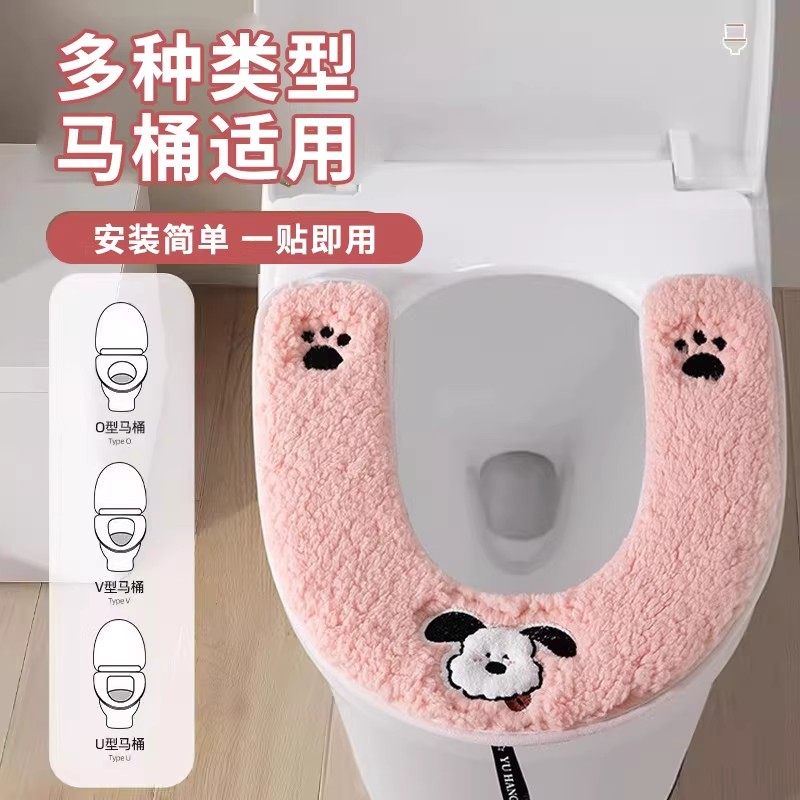 淘马桶坐垫家用冬季粘贴式防水马桶套垫圈四季通用马桶贴坐便器垫子