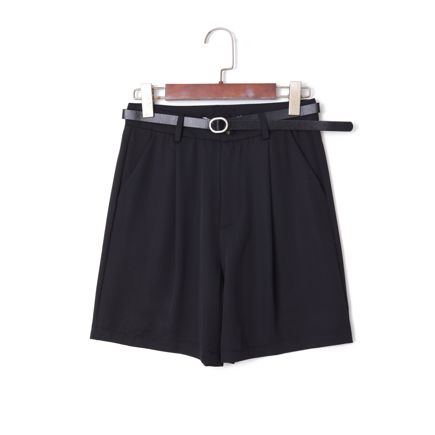 淘宝夏季黑色高腰西装短裤女 垂坠感A字阔腿裤 职场通勤显瘦百搭短裤
