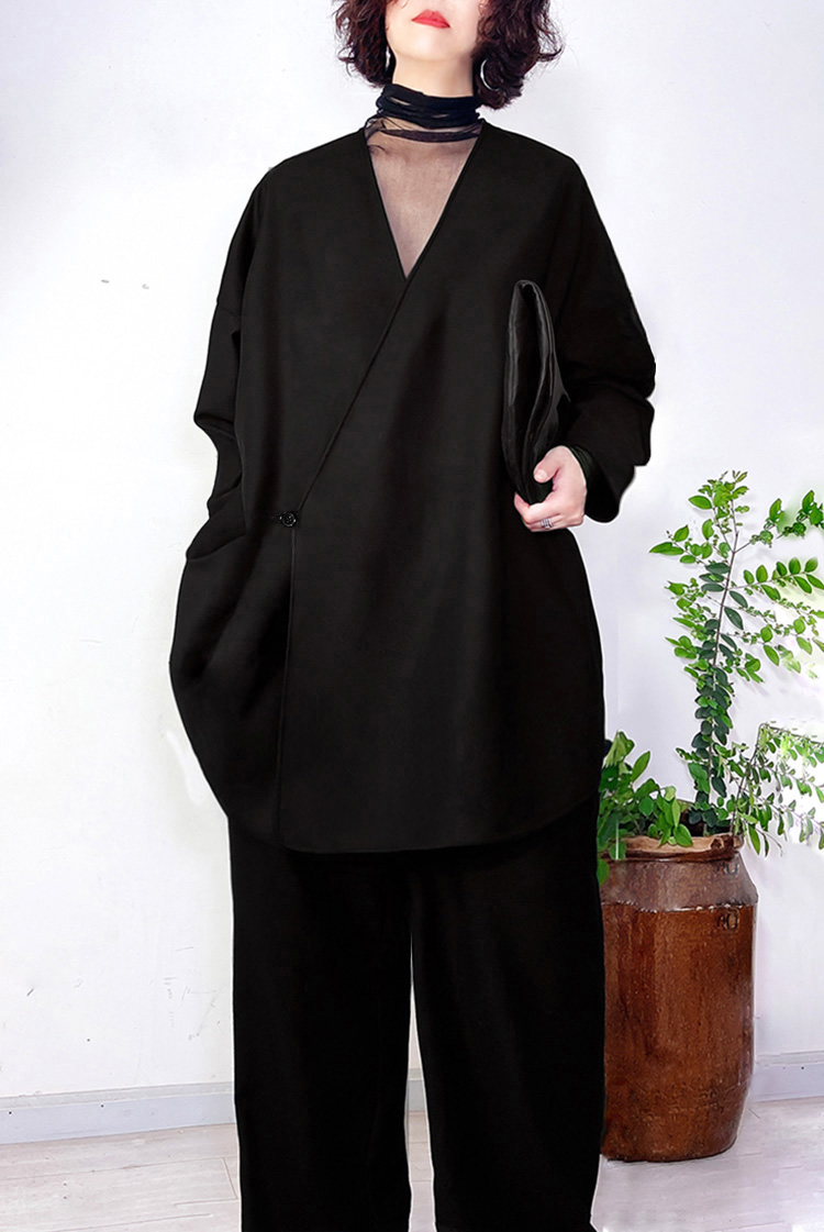PKH.HK特 春上新 自留有品时髦精致黑色丝绒点睛小金扣西装外套