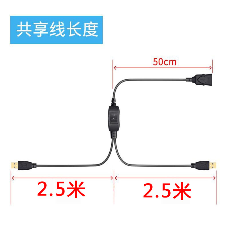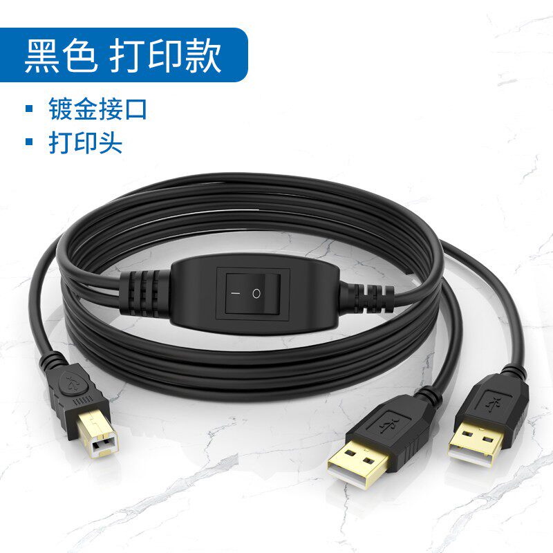 天猫DRACO 适用于USB打印机共享器 一拖二数据两台电脑共用鼠标键盘一分二连接线