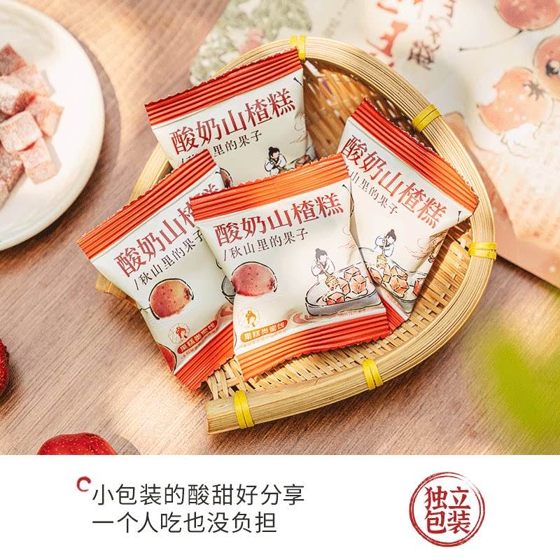 茶颜悦色推出的“茶颜家族酸奶山楂糕”是一款融合酸甜口感与休闲乐趣的蜜饯零食。精选优质山楂,搭配醇香酸奶风味,口感软糯细腻,酸甜适中,开胃解腻。小巧独立包装,方便携带,是追剧、办公下午茶时光的理想伴侣。无论是午后困顿时提神醒脑,还是与同事分享小确幸,都能带来轻松愉悦的体验。作为茶颜悦色家族的新成员,酸奶山楂糕延续品牌清新自然的调性,将传统蜜饯与现代风味巧妙结合,满足年轻人对健康与美味的双重追求,让每一口都充满惊喜与满足感。