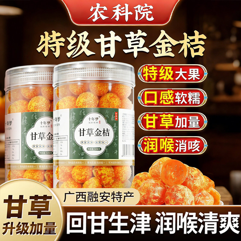 天猫农科院甘草金桔干金橘广西特产正宗官方旗舰店蜜饯果脯化痰止咳