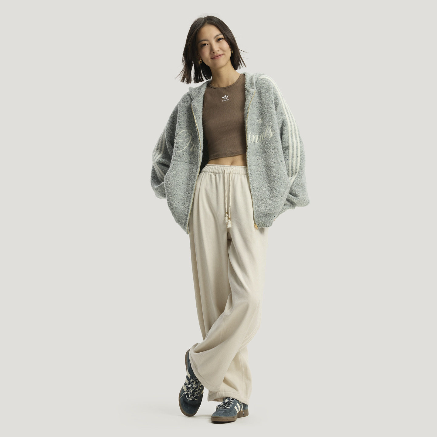 金晨同款加厚时尚休闲高腰运动阔腿裤女秋冬adidas阿迪达斯轻运动