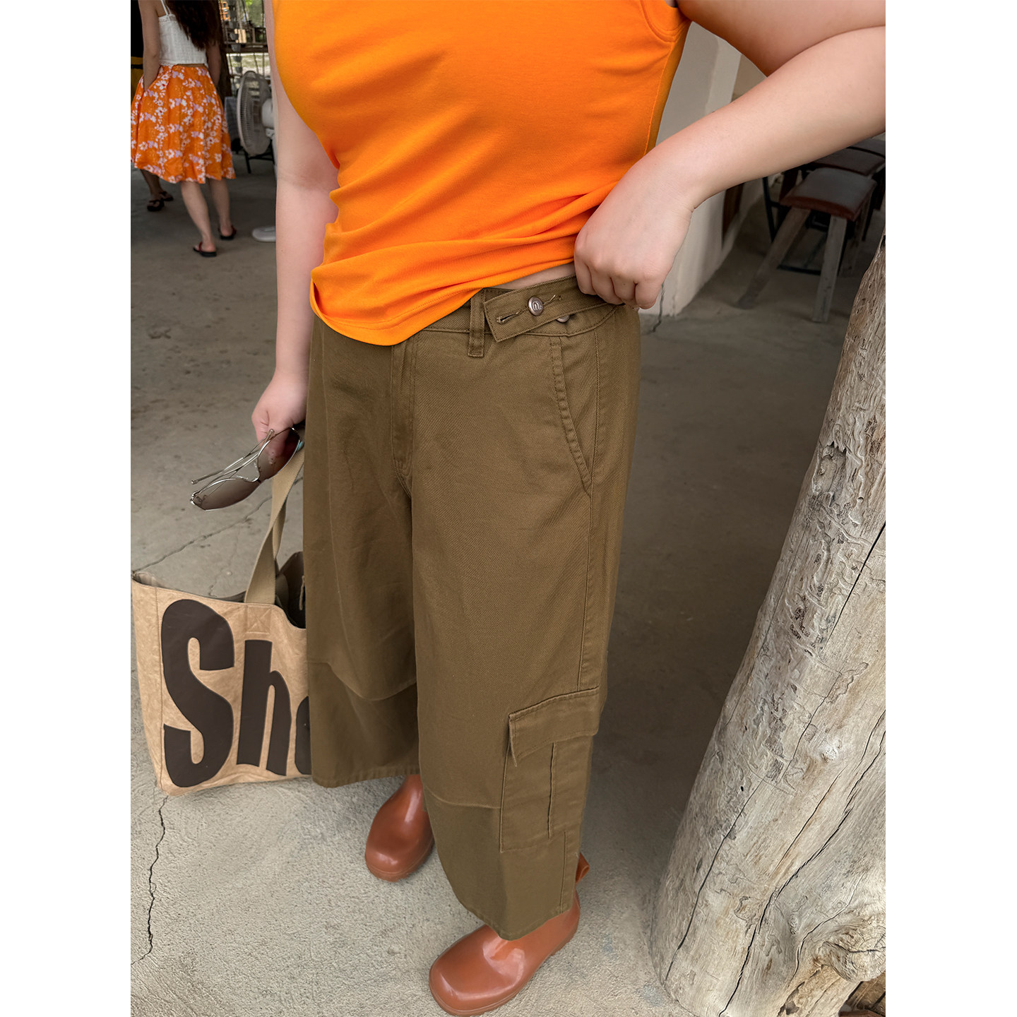 胖mm八分阔腿裤,专为大码女性设计,兼顾舒适与时尚。采用优质纯棉面料,亲肤透气,春夏穿着清爽自在。宽松阔腿版型巧妙修饰腿型,八分长度拉长腿部线条,视觉更显高挑。多口袋工装设计,实用又帅气,增添街头休闲感。高腰剪裁包容性强,轻松驾驭200斤身材,不勒腰腹,活动自如。木子理想大码女装注重细节与品质,致力于为微胖女性打造自信穿搭。无论是日常通勤还是休闲出游,这条工装裤都能让你舒适自在,展现独特魅力,是胖mm衣橱里的必备单品。