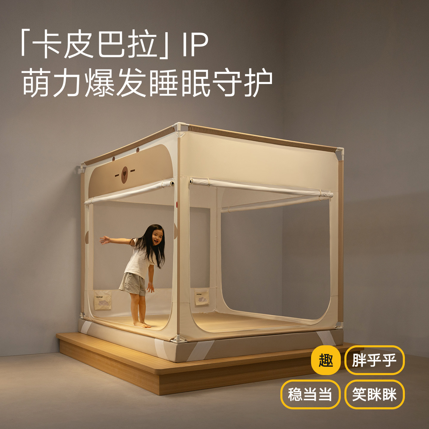 美朵嘉2026新款蚊帐防摔儿童家用床上帐篷,专为男孩女孩卧室设计,集防蚊、防摔、全罩式防护于一体。采用高密度透气网纱,有效阻隔蚊虫,守护孩子安睡;内置稳固支撑架,搭配底部加宽围挡设计,防止翻身掉落,安全贴心。全罩式结构360°无死角防护,顶部可开合,方便进出。材质环保无毒,轻盈透气,四季适用。安装简易,无需工具,轻松搭建温馨睡眠空间。无论是儿童房还是家庭卧室,美朵嘉蚊帐都以实用与美观兼具的设计,为孩子打造安全、舒适、私密的睡眠环境,是家长安心之选。