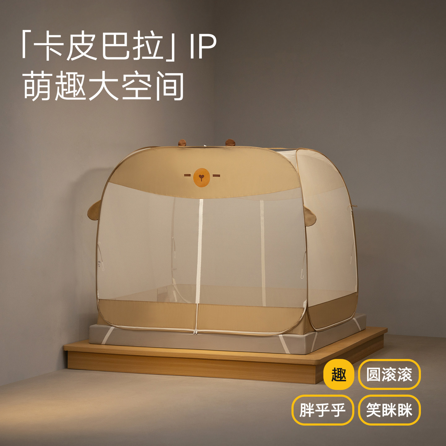 防摔蚊帐2026新款家用蒙古包儿童免安装卧室全底婴儿纹帐防止掉床