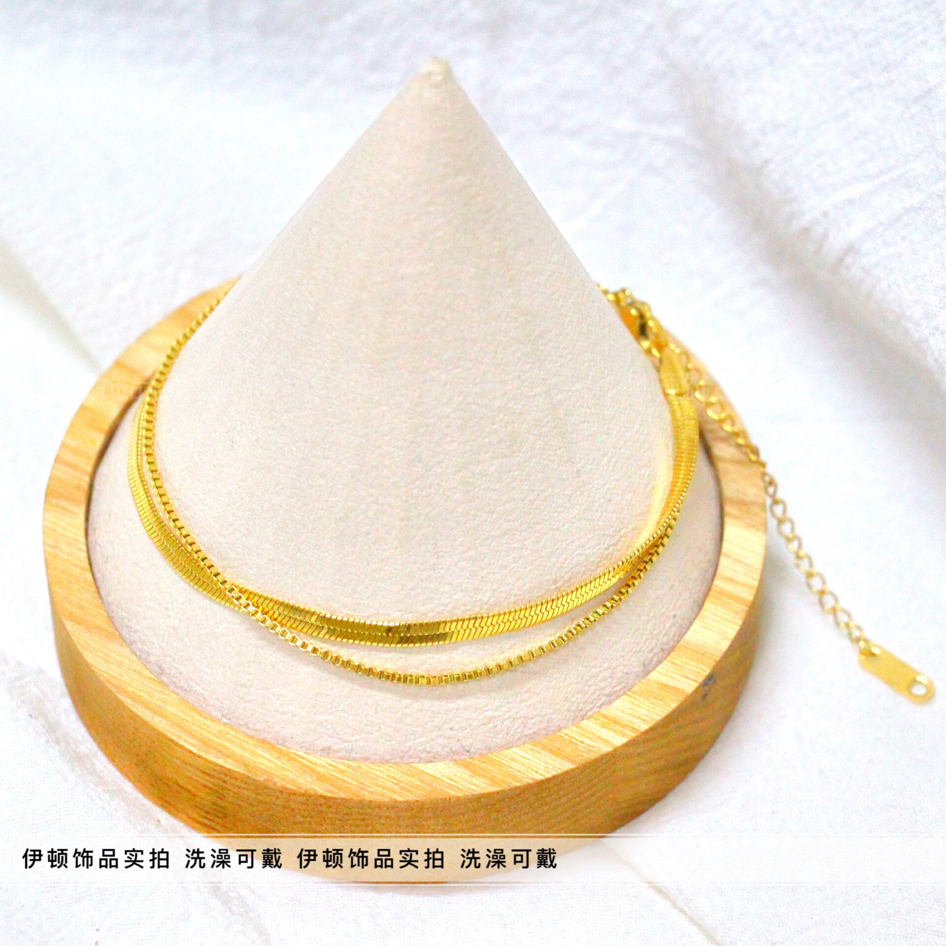 淘宝【洗澡不用摘】新款钛钢保色扁蛇骨拼盒子链双层设计脚链 脚饰