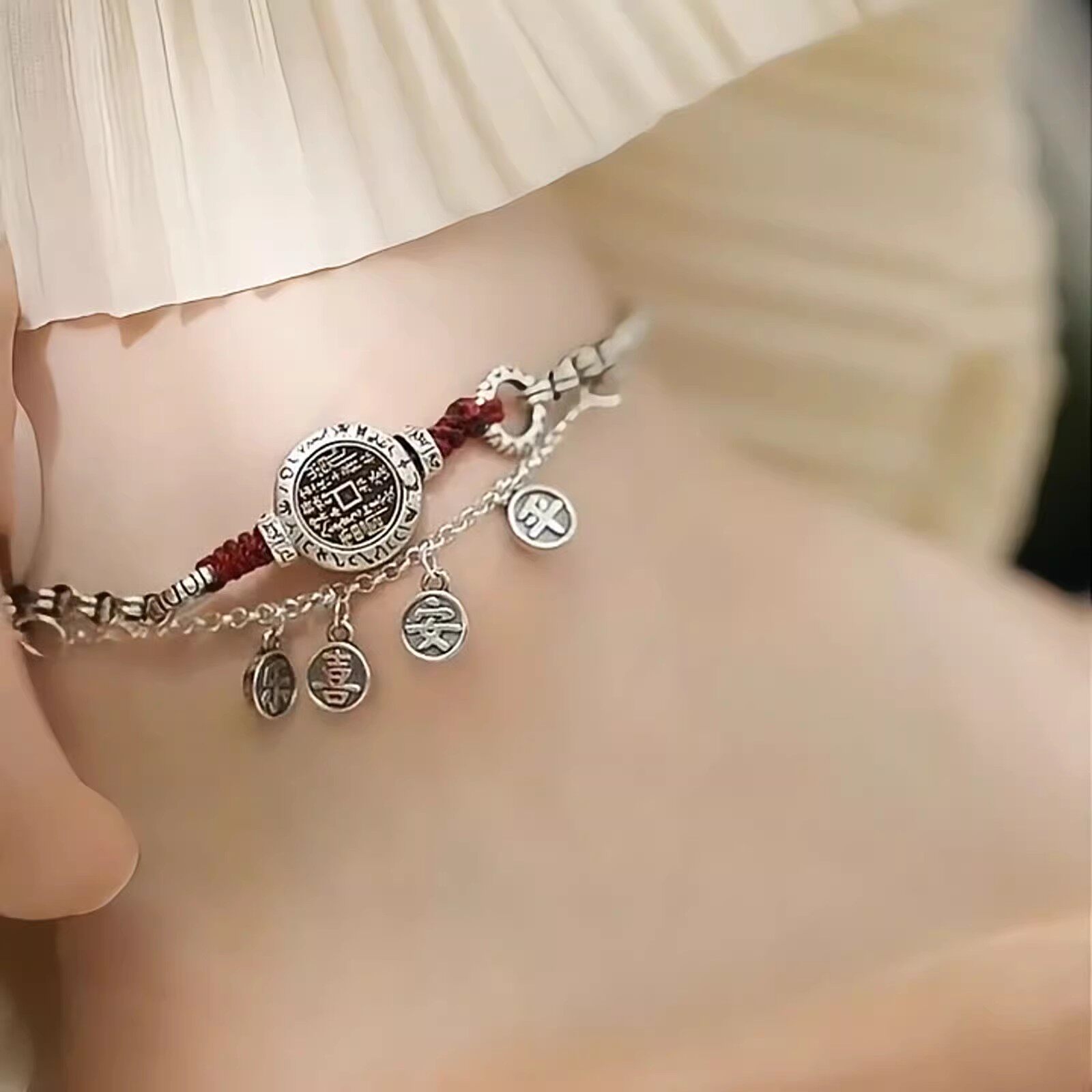 淘宝S925纯银平安喜乐山鬼牌脚链女新中式小众设计高级感轻奢百搭脚饰