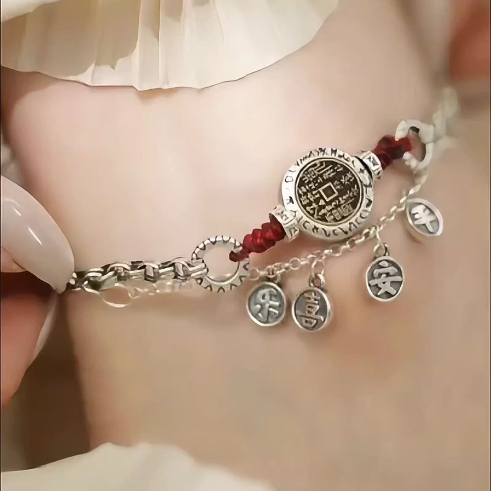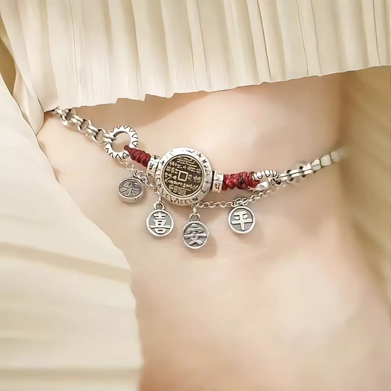 S925纯银平安喜乐山鬼牌脚链,融合新中式美学与东方吉祥寓意,以精致山鬼牌为点睛之笔,镌刻“平安喜乐”四字,承载美好祝愿。采用925纯银材质,光泽温润,抗氧化不易过敏,佩戴舒适。链身设计简约流畅,搭配可调节扣环,贴合不同脚踝尺寸。小众轻奢风格,兼具高级感与百搭性,无论是日常穿搭、度假出行,还是搭配汉服、裙装,皆能增添一抹雅致韵味。细节打磨考究,彰显匠心工艺,既是时尚脚饰,亦是寓意吉祥的随身护佑,适合追求个性与品质的现代女性。