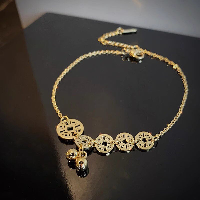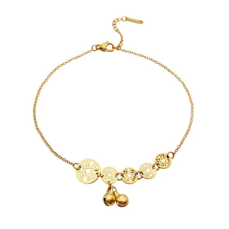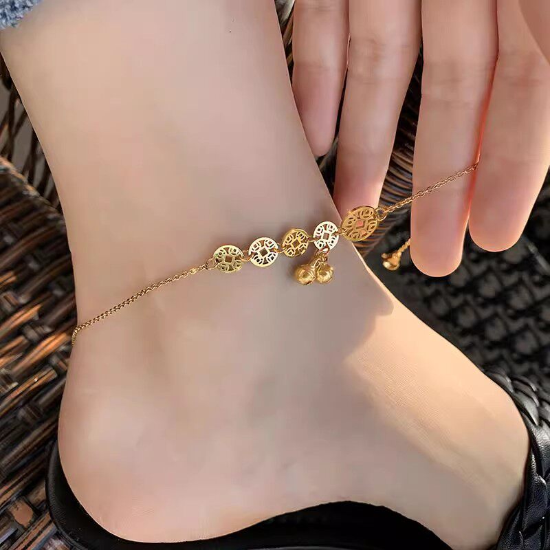 天猫钛钢脚链不掉色女铃铛钱币足链设计感气质高级感闺蜜脚饰古风百搭