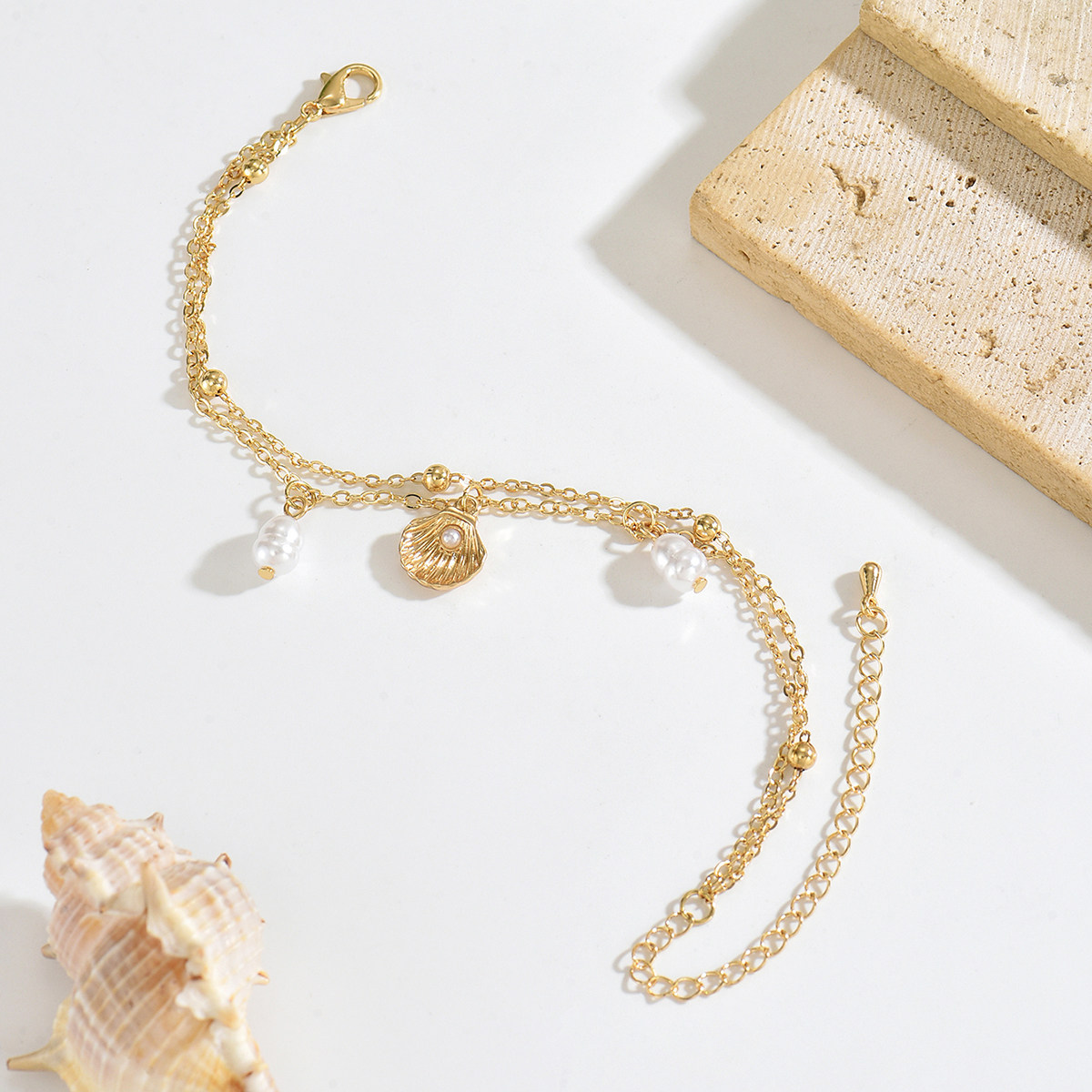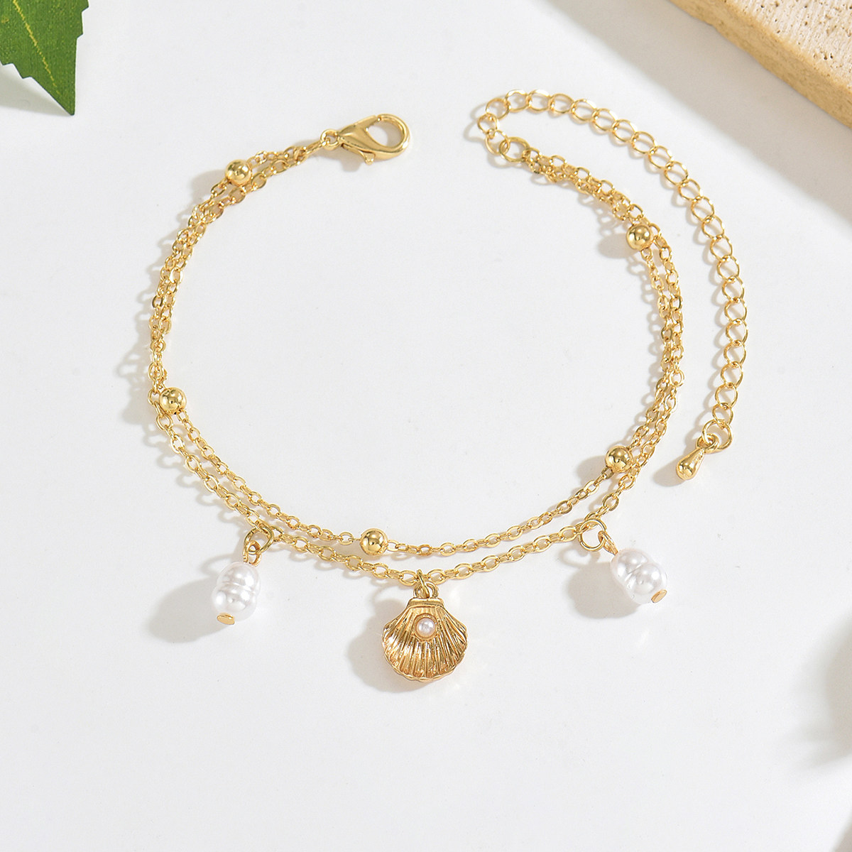 淘宝优雅ins风海洋贝壳珍珠脚链时尚个性叠戴风可爱双层吊坠脚饰