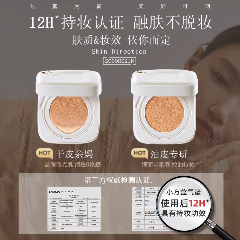 修可芙小方盒气垫BB霜是一款集控油、遮瑕、持久、防水防汗于一体的全能底妆产品,适合油性及干性肌肤使用。轻盈细腻的质地,一抹即融,打造自然无瑕的哑光雾面妆效。高遮瑕力有效隐匿毛孔、痘印与瑕疵,同时控油配方持久锁妆,8小时不脱妆不暗沉。防水防汗设计,即使在炎热夏季或运动后也能保持妆容清爽完整。独特气垫设计取用便捷,随时补妆不卡粉。无论是日常通勤还是长时间外出,修可芙小方盒都能为你提供贴合、持久的完美底妆体验,是追求高效持妆人士的理想之选。