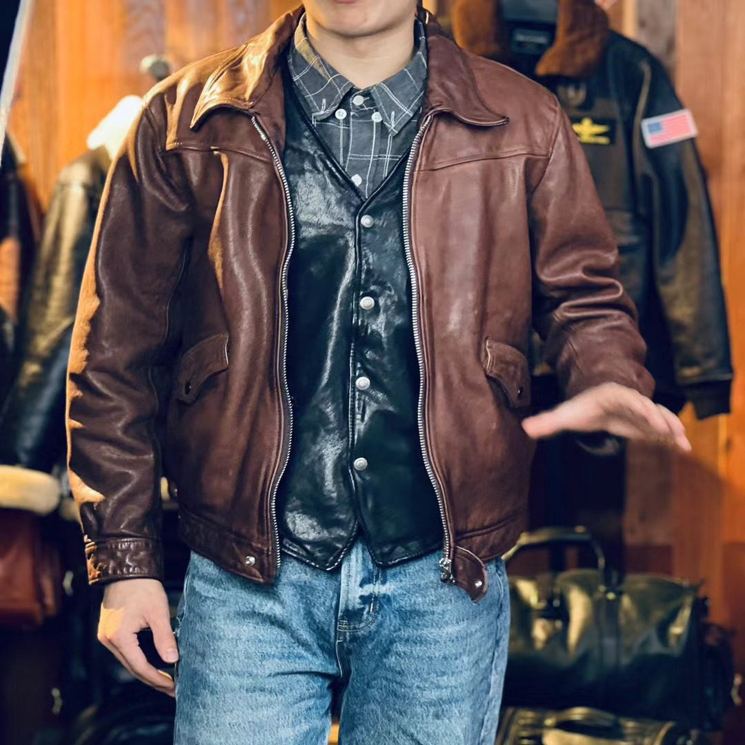 实惠版司闸员 复刻海宁头层牛皮真皮皮衣男皮大衣2色入