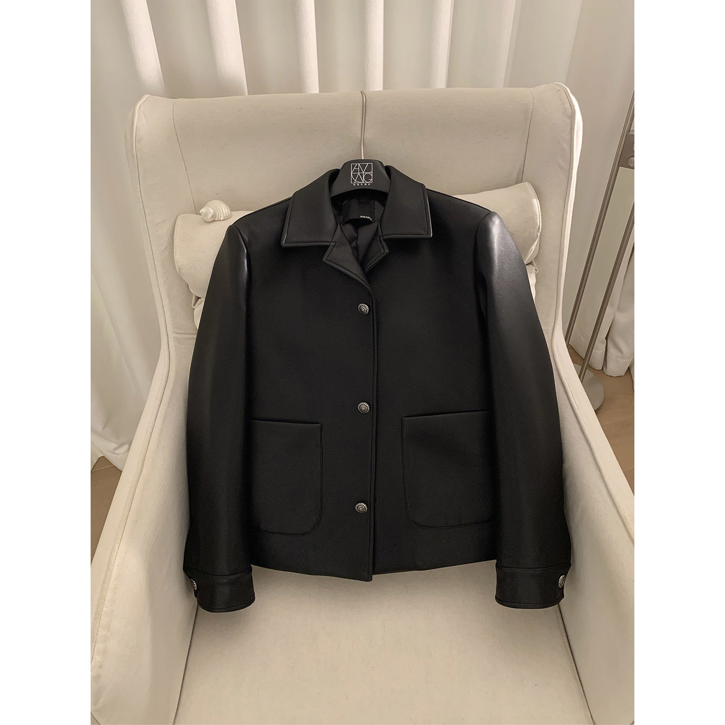 季末7折SANDRO2025秋冬新款男装法式牛皮革纯色简约短款皮衣外套