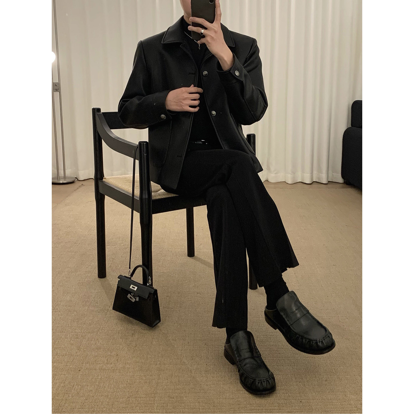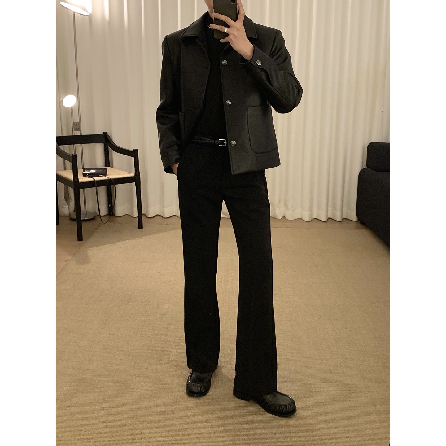 淘宝阿茶与阿古【早春皮衣】黑色翻领短款皮衣外套男款韩版正肩皮夹克